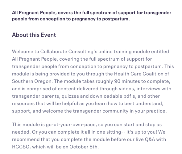 The training is supported by the Health Care Coalition of Southern Oregon which exists to achieve ‘health equity’ and receives federal and state grants. HCCSO has a specific focus in perinatal care, general maternity care, baby care and substance abuse. It really is an upside down world.