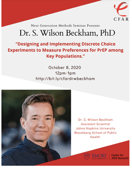 Dr S. Will Beckham works in the field of HIV prevention. I joined Beckham’s seminar where he explained the processes behind his ‘Discrete Choice Experiments’ which involved surveying a group of women involved in prostitution in Tanzania, East Africa (who he mostly referred to as ‘sex workers’).