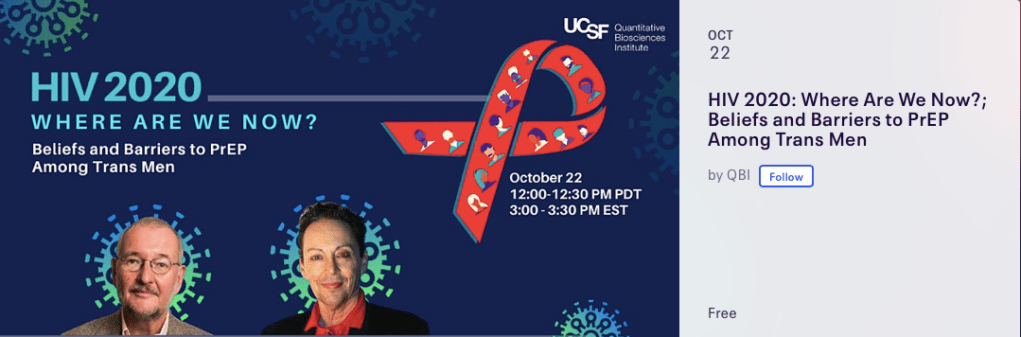 The Quantitative Biosciences Institute is linked to the University of California and based in San Francisco. The Institute held a webinar entitled ‘HIV 2020: Where Are We Now?; Beliefs and Barriers to PrEP Among Trans Men’.