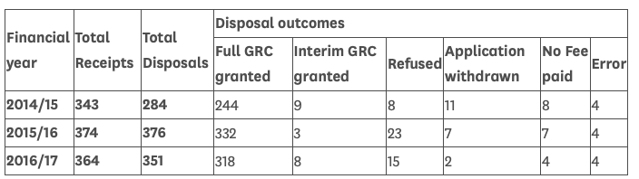 Renz responded that there was no data on the number of people who had been refused by the GRC panel for being non-binary. She said that the refusal rate* was between 5-10% ‘depending on what quarter of the year you look at’ and she said that during the course of her own research she had been shown responses sent to non-binary applicants who had been ‘refused’ by the panel with the recommendation that they reapply if and when they decide to identify into the opposite sex. Also people ‘self-selected’ out of the process (which was never set up to deal with non-binary applicants).