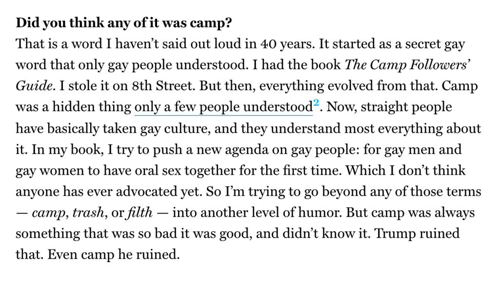 From the Times interview ‘John Waters: ‘It’s too easy to be gay’ – June 2022
