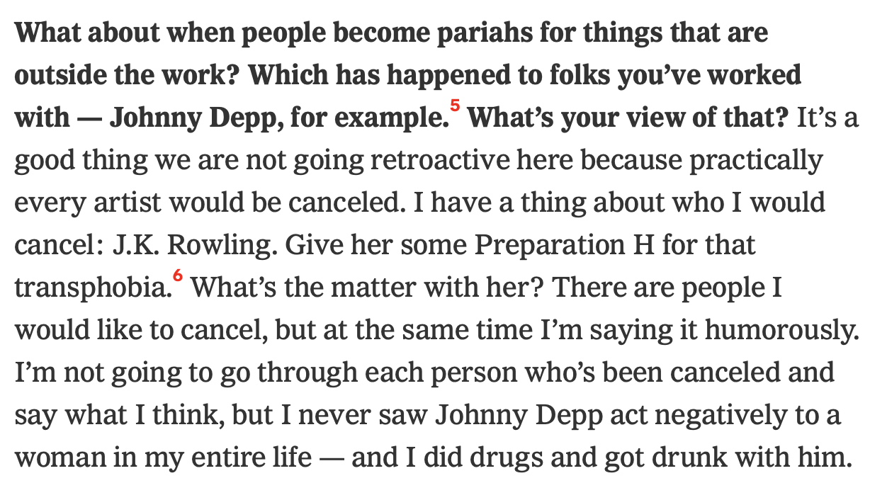 Quotes in gallery above taken from the New York Times article John Waters Is Ready to Defend the Worst People in the World (subtitle should be: ‘but not JK Rowling’) published 18 March 2022.