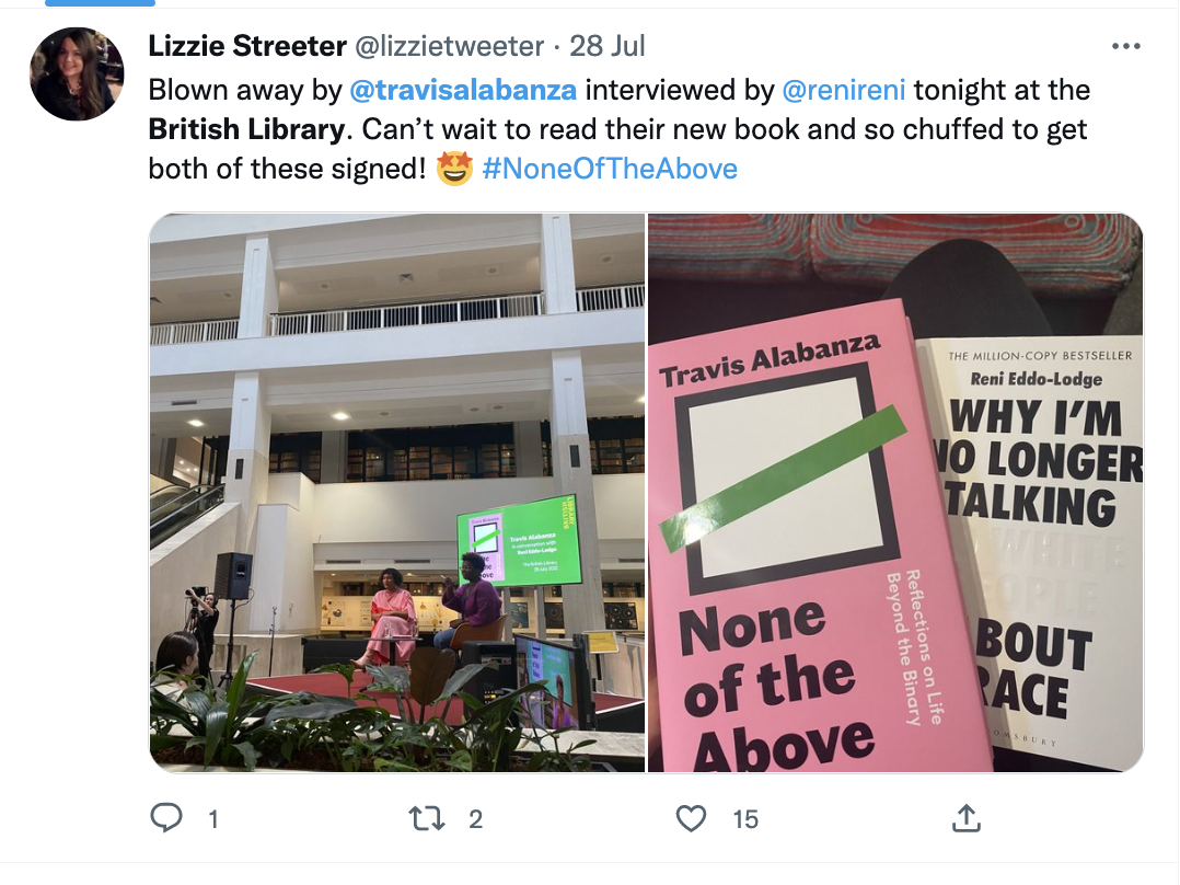 Asked Dabiri. How professional. That’s right Britain is so transphobic because people like Travis get invited to the London Literature Festival, whilst Helen Joyce and Kathleen Stock, whose books topped the charts, are ignored. That’s a whole lot of transphobia right there.