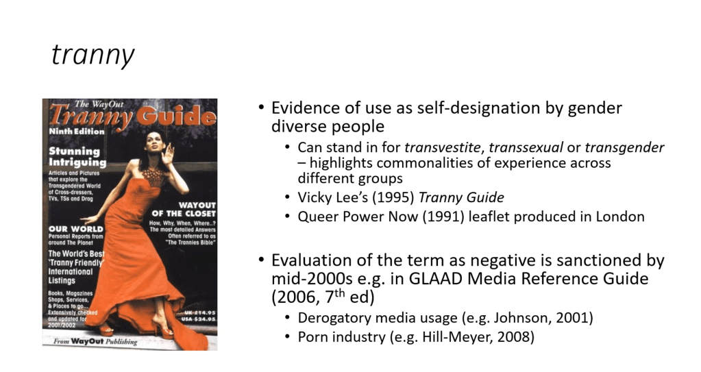 After putting billions of words into a computer programme Gupta was able to ascertain that the word ‘tranny’ has two meanings. One referred to trans people and the other referred to ‘motor transmission’. As a ‘massive queer’ she didn’t understand ‘car things’. Let me give you a little clue. They travel on the road with four wheels and go Vroom! Vroom! Postman Pat used to drive one. Trust me, I’m not a doctor.