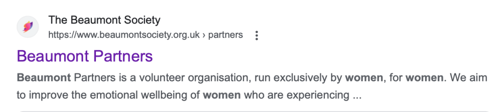By-the-by, the Women of the Beaumont Society is now known as Beaumont Partners, and the fact that it was ‘run exclusively by women, for women’ is now deleted from its page but still available when you look at the cache. The word ‘woman’ has now been replaced by ‘gender female’.