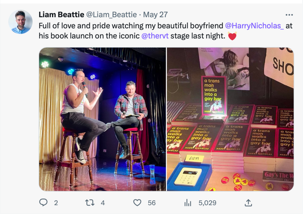 Also in the audience was the man (who, as far I can tell, really is a man) she is due to marry. Liam Beattie previously worked as a policy officer for the Terence Higgins Trust and is now Public Affairs Adviser at Royal College of Nursing (RCN) and Trustee at Sex Education Forum (who have form for putting out incredibly dodgy materials – see here and here for examples). Interestingly there has been a distinct uptick in magazine pieces featuring trans people/issues at the RCN since Beattie’s appointment in April 2022 – see here.