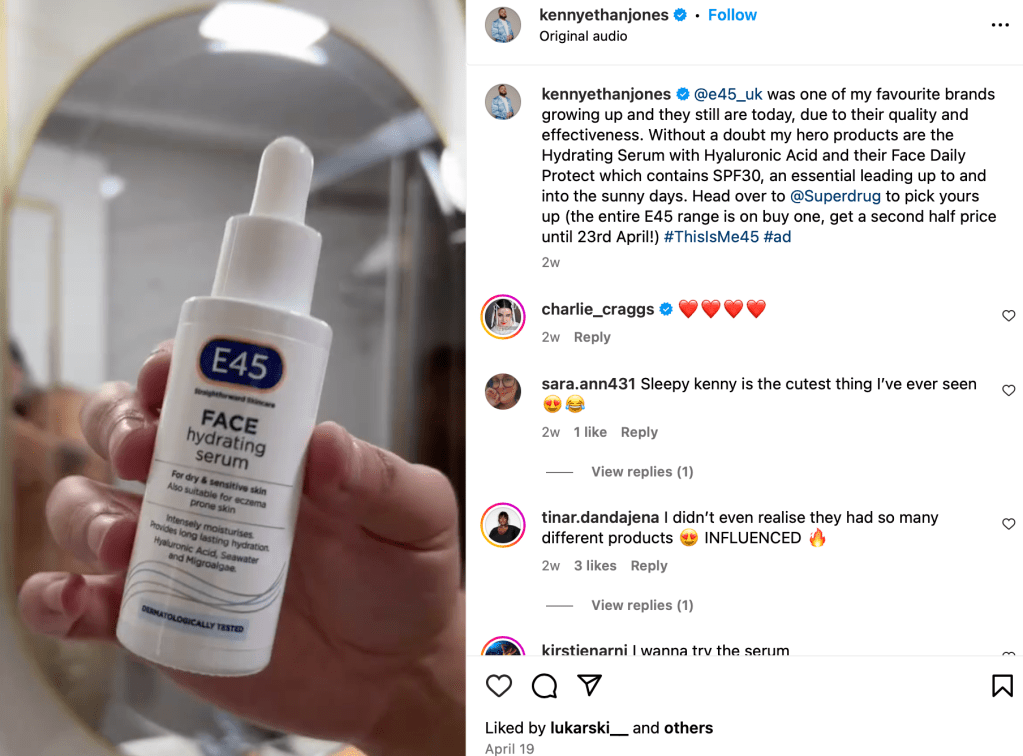 At the time of writing, Ethan Jones’s most recent endorsement was E45 Cream in conjunction with a Superdrug deal, posted on 19 April 2024. In January 2024 she was interviewed by TV star Davina McCall (who likes to style herself as an expert on menopause) which received over 100,000 views (way more than many terrestrial TV shows receive). (According to comments, Ethan Jones’s menopause and subsequent hysterectomy, due to testosterone use, were discussed uncritically.) In 2023, both she and Craggs had a joint gig representing the travel firm Tui in New York. Her book, Dear Cisgender People, has a publication date of 6 June 2024.
