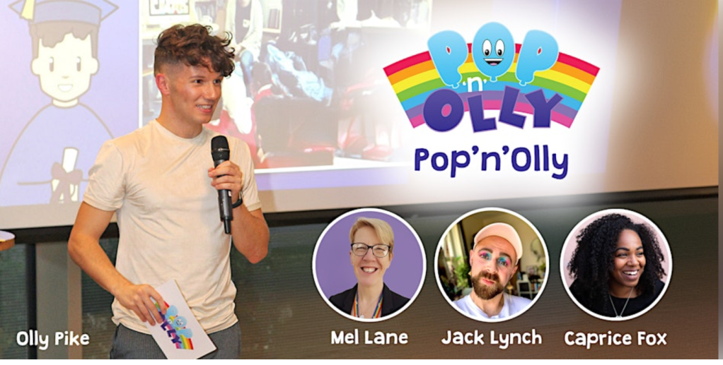 Like Mel Lane, Jack Lynch had also been with the company for five years and identifies as non-binary. He believes that [LGBT+] education can ‘create such positive change’. His career history is in athletic coaching (clearly not a sport he practises himself) for both adults and children, but particularly the latter because he liked seeing ‘the changes which happen so quickly’. He joined Pop’N’Olly at a time when he was reflecting on his own experience of being a ‘queer child’ at school. If only he had had Pop’N’Olly resources back then! His particular skill set means he is able to empower children and spark joy, just by standing in front of the kids ‘being himself’.