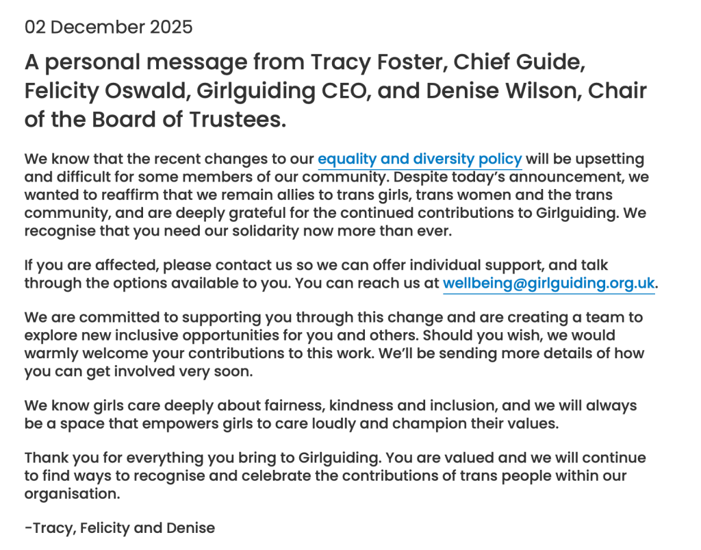 Girlguiding’s statements:
